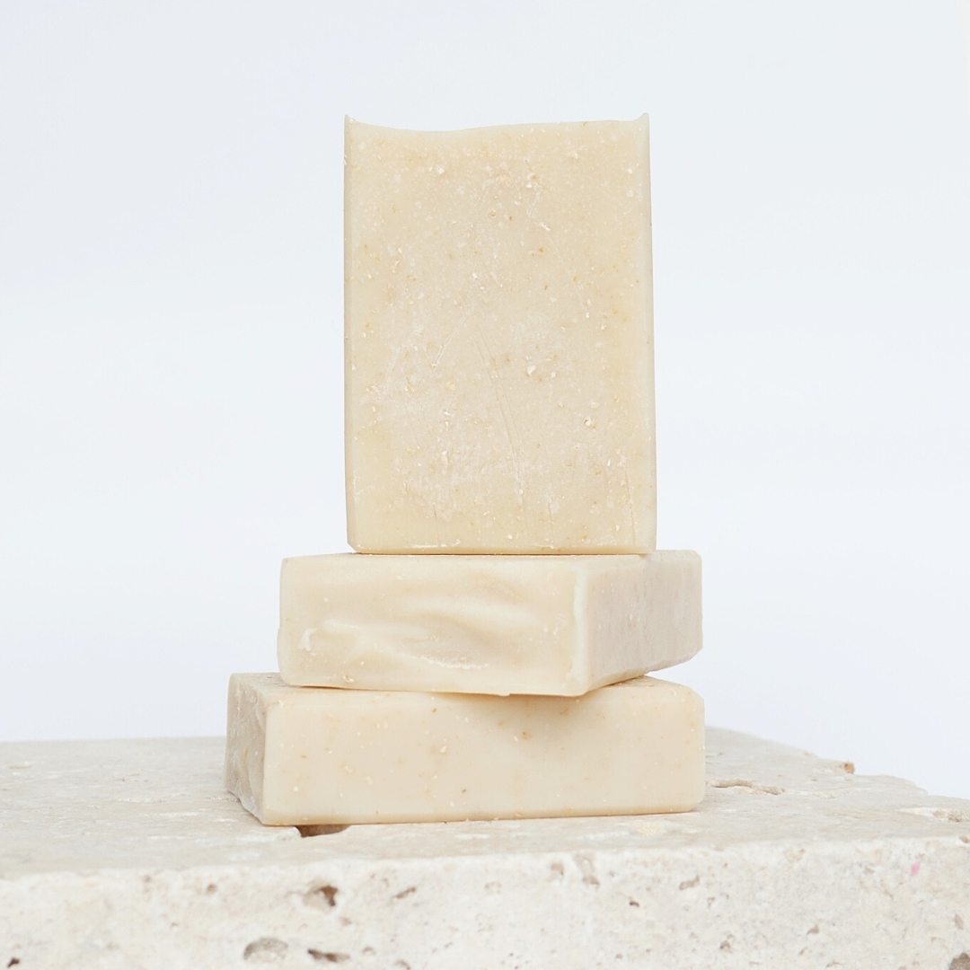 Oryza Sativa Bran Oil (Rice Bran), Olea Europaea Oil (Olive), Aqua, Sodium Hydroxide, Theobroma Cacao Seed Butter (Cocoa), Cocos Nucifera Oil (Coconut), Avena Sativa Kernel (Colloidal Oat), Butyrospermum Parkii Fruit Butter (Shea), Goat Milk Powder, Ricinus Communis Seed Oil (Castor), Kaolin Clay, Mel (Honey), Stearic Acid